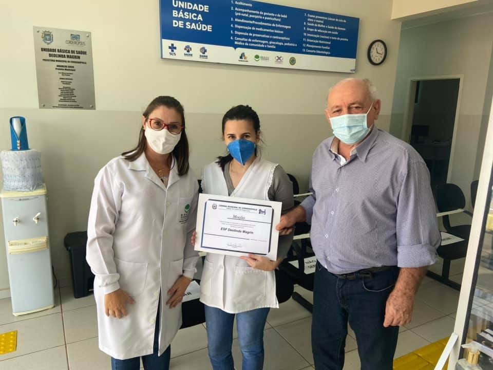 Vereador Carlinhos Barbosa entrega Moção de aplausos aos profissionais da Saúde