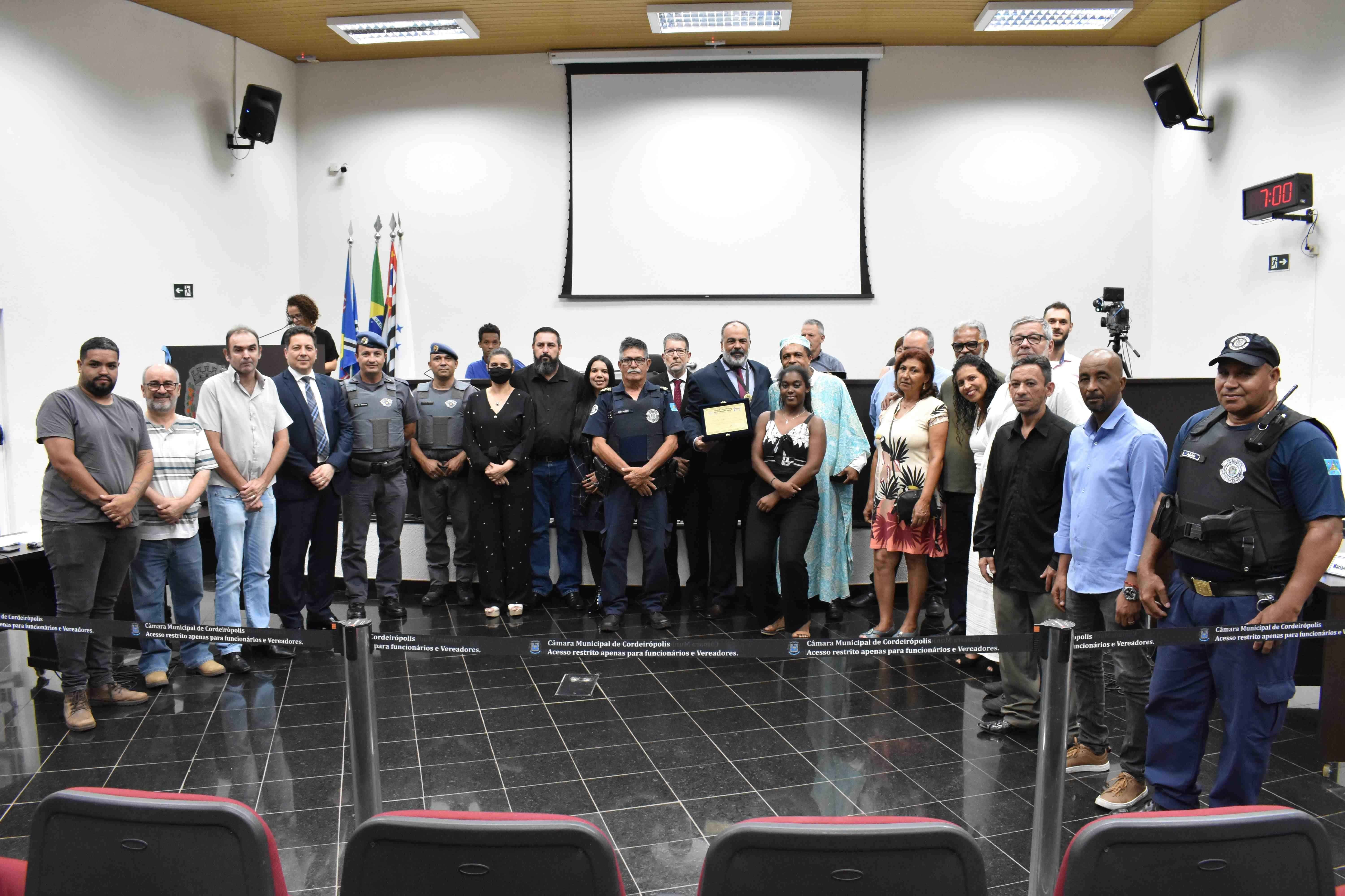 Marcos da Rocha Simões recebeu a medalha “Zumbi dos Palmares” e o diploma de gratidão, pela promoção da igualdade racial. A honraria foi entregue na última terça-feira (21) em sessão ordinária, na Câmara dos Vereadores. Uma homenagem do vereador Sérgio Balthazar Rodrigues de Oliveira, através do Decreto Legislativo nº 15/2023.
