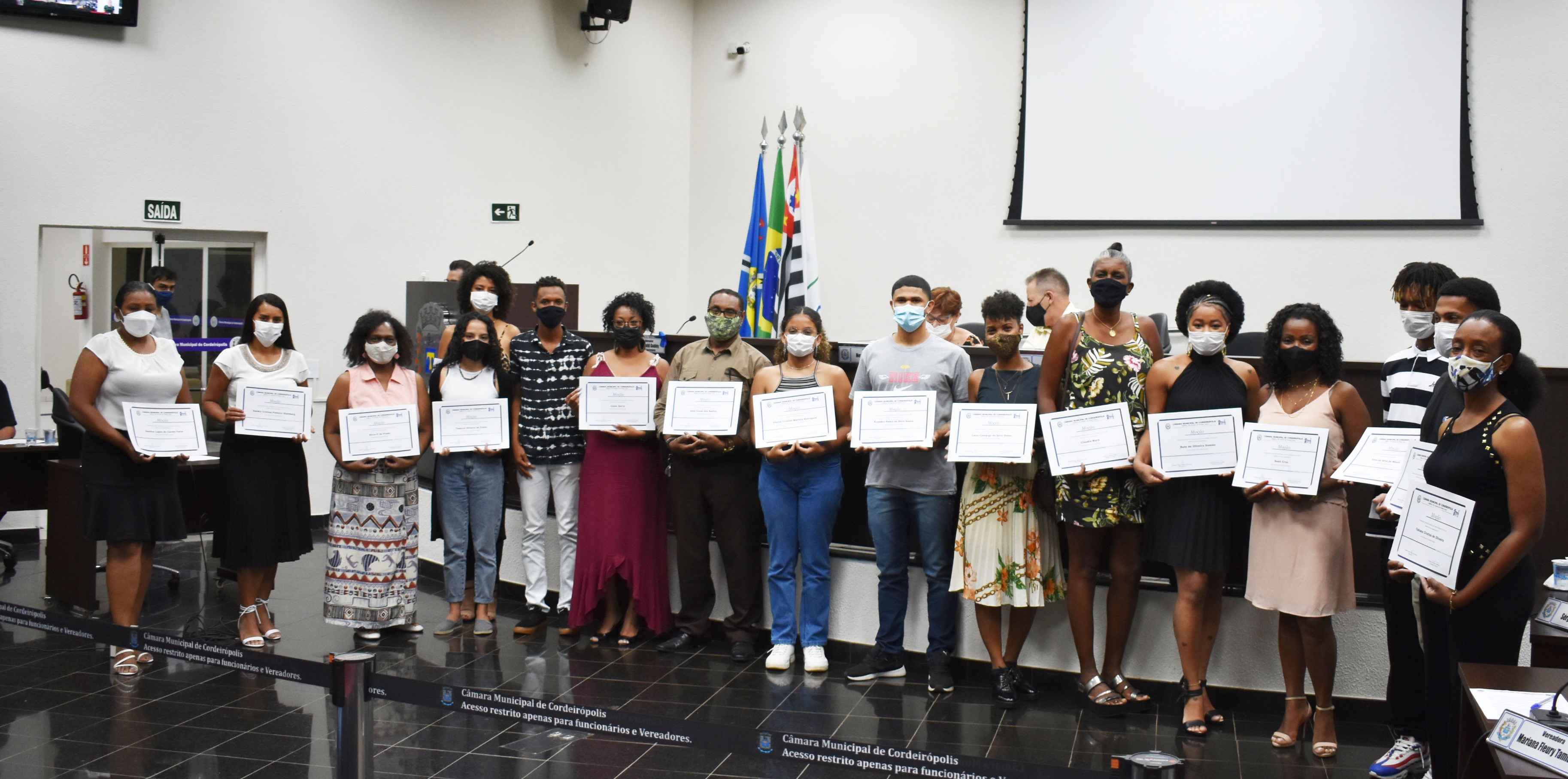 Conselho Municipal de Políticas Públicas pela Igualdade Racial - COMPPIR, em razão da comemoração do dia da Consciência Negra; Vitoria Cristina Martins Rodrigues, em razão da comemoração do dia da Consciência Negra; Stefany dos Santos de Jesus, em razão da comemoração do dia da Consciência Negra; professores negros da rede municipal de ensino; Fabiana Cristina de Oliveira; Evandro Pedro da Silva Sousa; Rute de Oliveira Gomes.