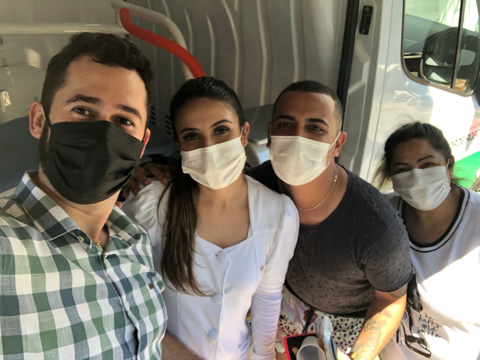 Durante o dia todo foram realizados mais de 100 atendimentos com exames laboratoriais, papanicolau, vacinas da covid e influenza e ainda atualização da carteira de vacinação, testes rápidos de HIV, Hep, Sífilis, Covid e o Odontomóvel.