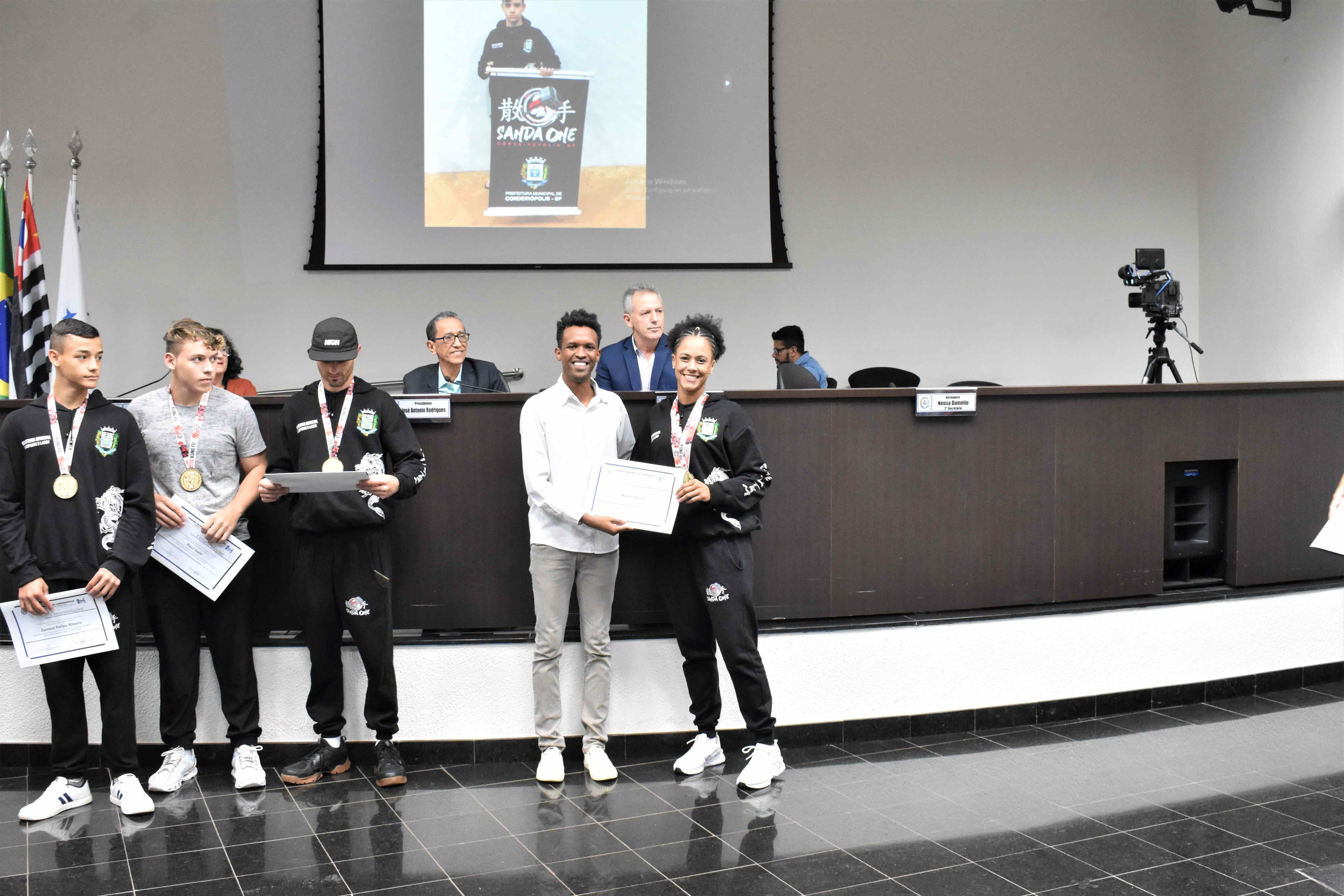 Na última quinta-feira (29) em Sessão Solene na Câmara Municipal, a Equipe Kung Fu Sanda One de Cordeirópolis foi homenageada através da Moção de nº 30/23 de autoria do vereador Diego Fabiano (MDB), a qual propõe voto de congratulações e aplausos.