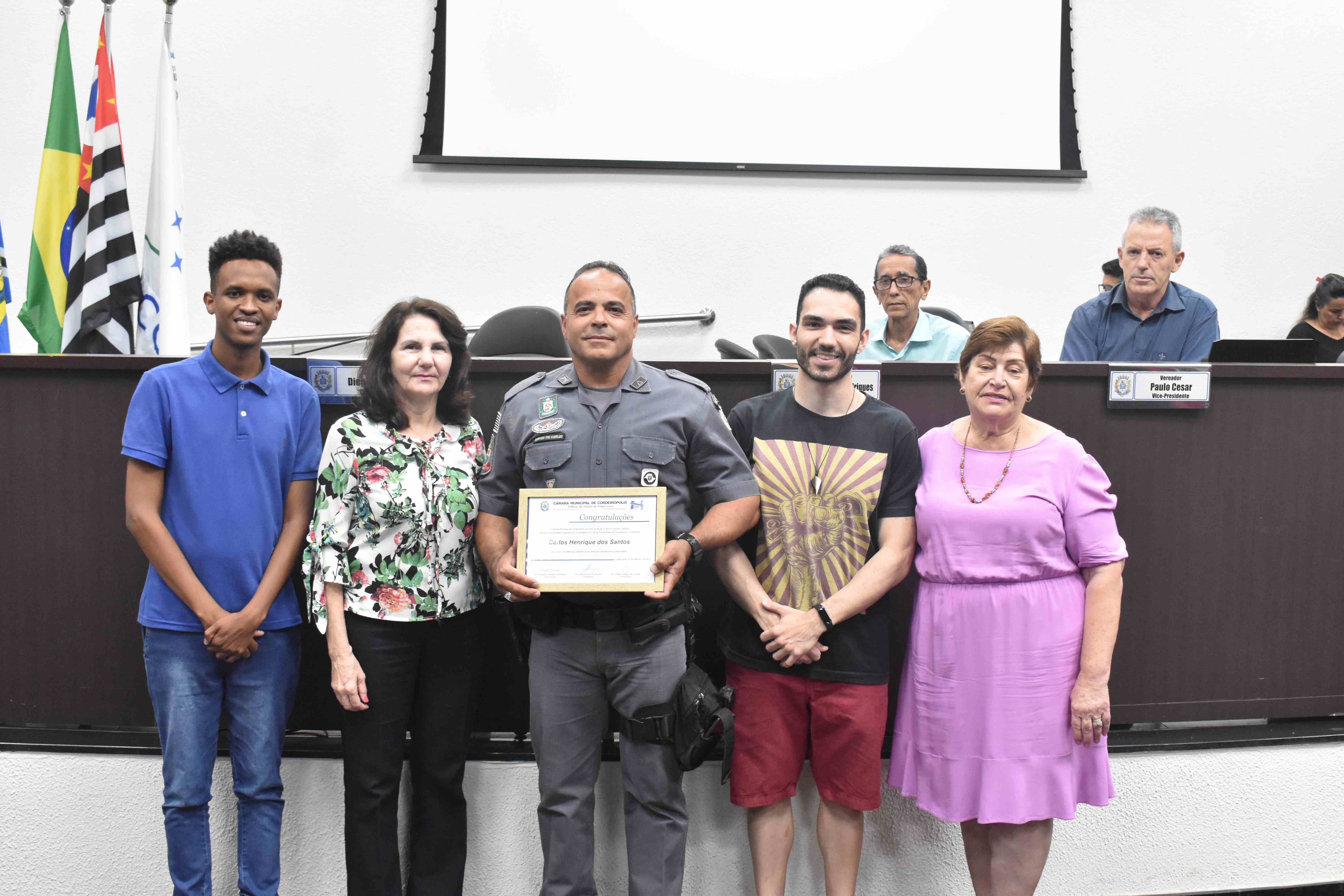 O homenageado atuou como Comandante do GP da Polícia Militar de Cordeirópolis, no período de janeiro de 2022 à agosto de 2023. O diploma alusivo a moção foi entregue durante a sessão plenária nesta terça-feira (05).