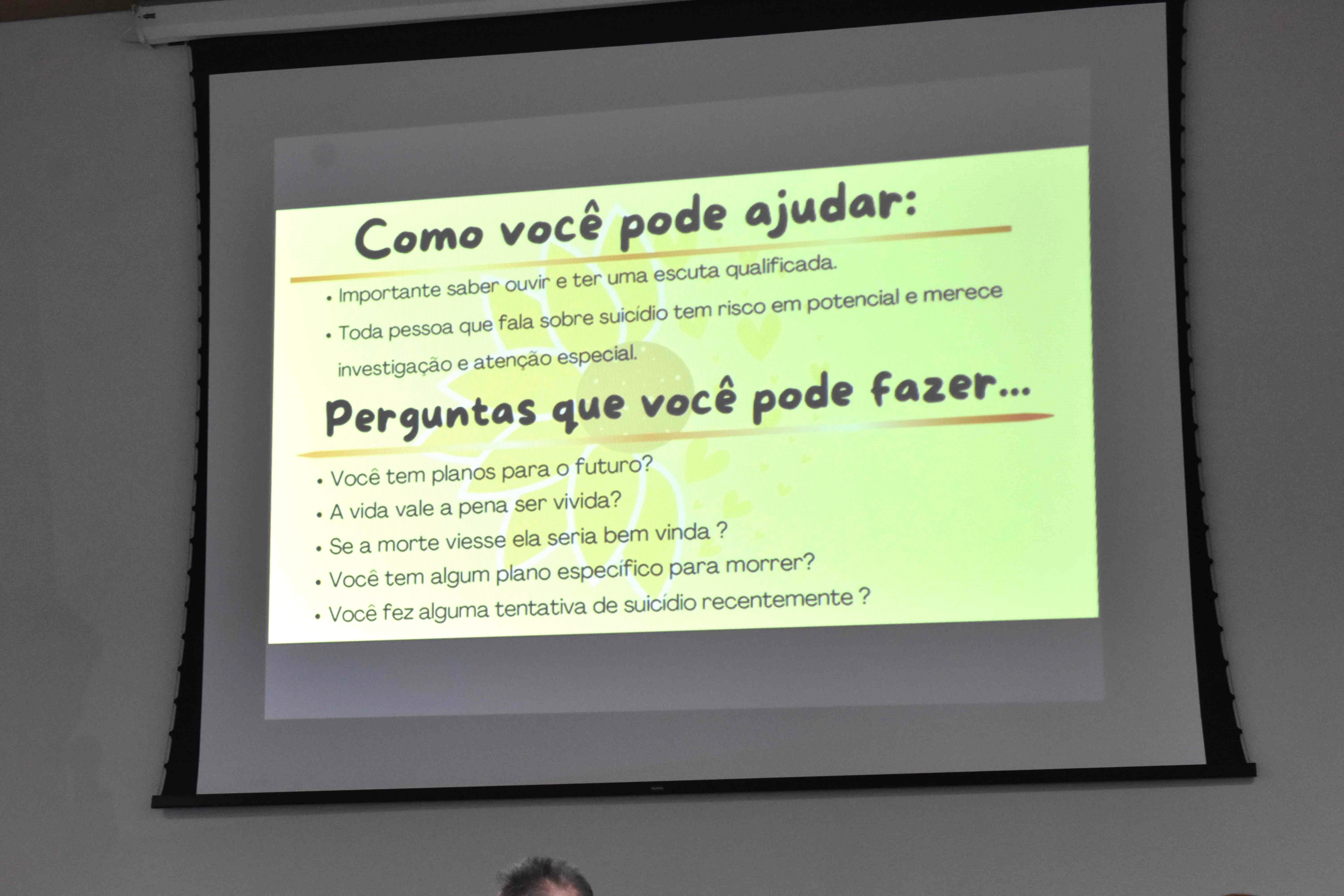 Alertou a população que a maior parte dos casos de suicídio podem ser evitados, se houver um tratamento de saúde mental qualificado e informações de qualidade. Portanto é preciso pedir ajuda e você também pode ajudar alguém: Ouvindo e acolhendo sem Julgamento!