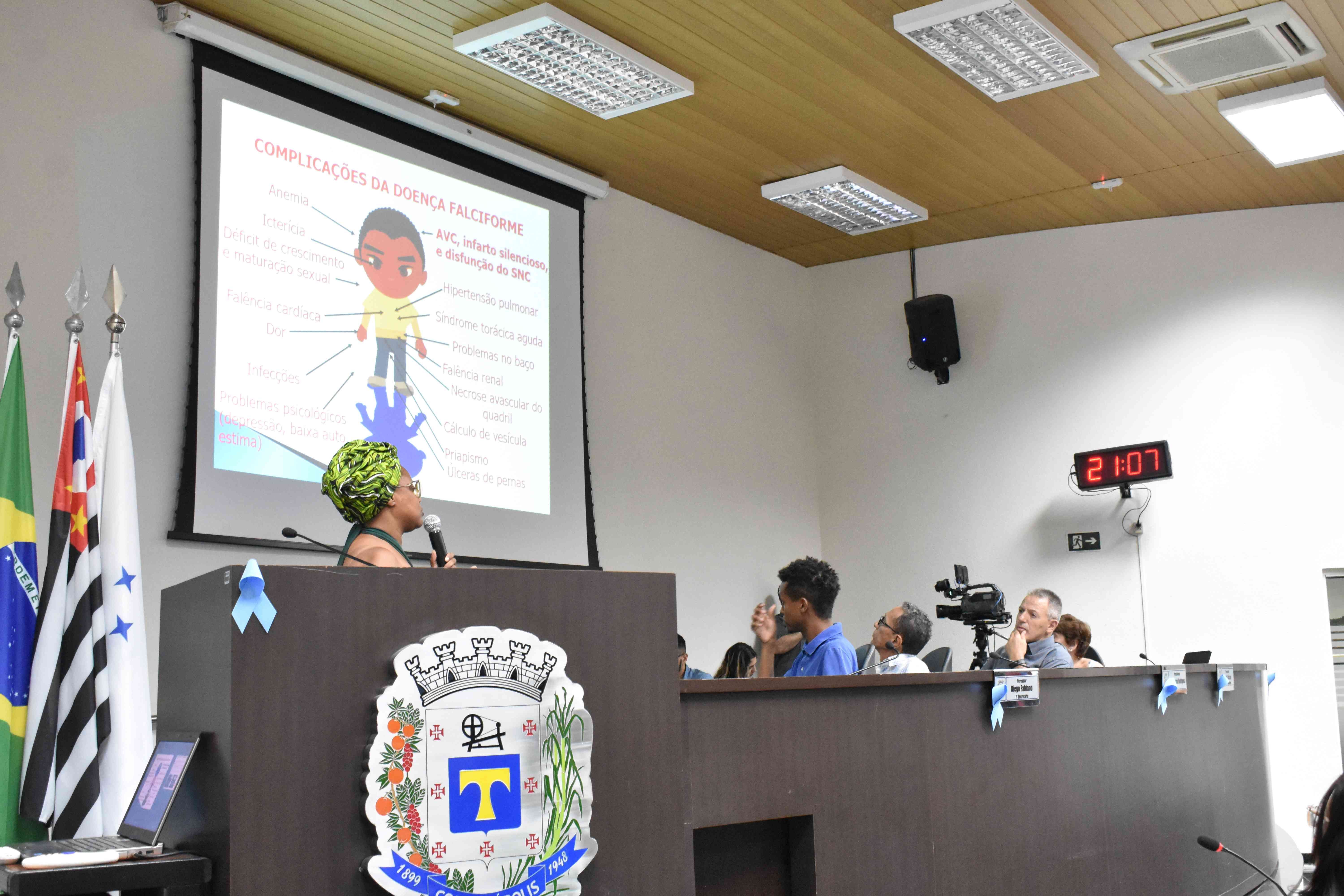 A convite do vereador Sérgio Balthazar, recebemos na Tribuna Livre na sessão ordinária desta terça-feira (21), a Sra. Sheila Ventura Pereira, presidente da APROFe, uma instituição sem fins lucrativos, fundada em 1998, criada por portadores de doença falciforme, composta por membros com a doença falciforme, portadores do traço falciforme e simpatizantes da causa, os quais trabalham para contribuir com a melhoria da qualidade de vida e acesso ao tratamento das pessoas com essa doença no Brasil.