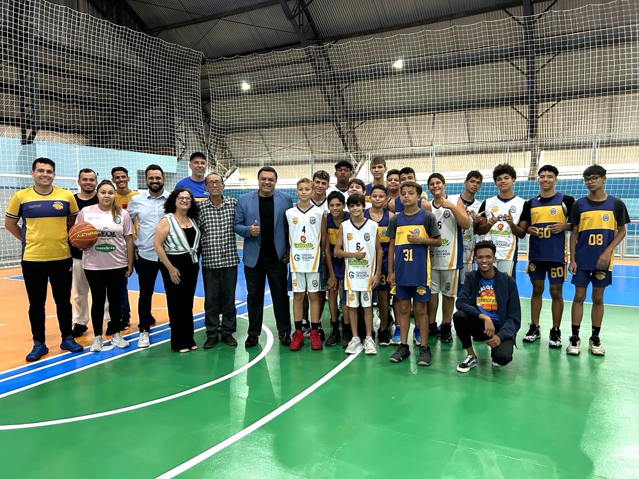 O Presidente da Câmara, vereador José Antônio Rodrigues e os vereadores Carlos Barbosa (Carlinhos), Diego Fabiano e Sérgio Balthazar, na última terça-feira (23), prestigiaram a cerimônia de entrega das quadras poliesportivas dos ginásios do Jd. Progresso e do Jd. Eldorado, revitalizadas pela Prefeitura Municipal com apoio do Governo Estadual, por meio da emenda do deputado Marcos Damásio, o qual também se fez presente na ocasião.